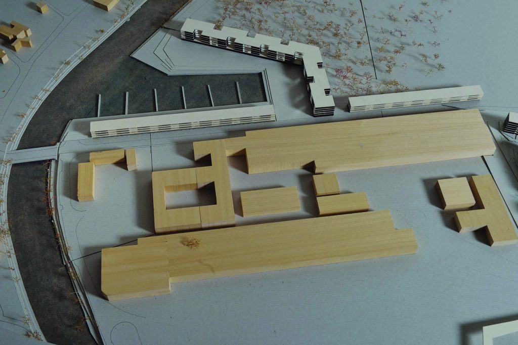 Le site est une friche ferroviaire sise à Yverdon, entre la gare et le lac. Trois bâtiments sont à conserver en l’état: les ateliers mécaniques des CFF, la HEP et l’hôpital psychiatrique. Une densité de 1.7 doit être respectée. Des bâtiments mixtes doivent être bâtis, avec 3’000 personnes et 1’500 emplois supplémentaires. A travers ce projet, nous avons traité toutes les échelles: de l’urbanisme au détail constructif. A l’échelle du quartier, il s’agit d’étudier les interactions entre les questions de densité, de mobilité, de mixité et de qualité de vie. On trouve, sur le site, trois canaux de différentes tailles et de différentes situations. Afin de garder une ligne commune pour tout le développement du projet, nous avons choisi de concevoir 3 pôles distincts mais ayant un concept identique: une cour ouverte sur le canal et à l’arrière des cours fermées, notre hypothèse de base étant les cours.